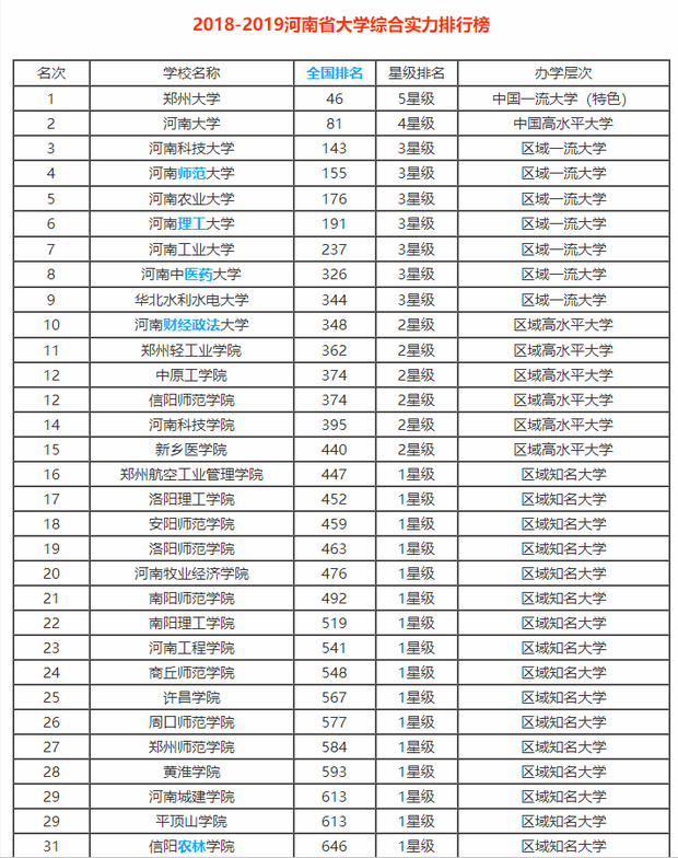 2018年河南高校排名河南省大学排行榜