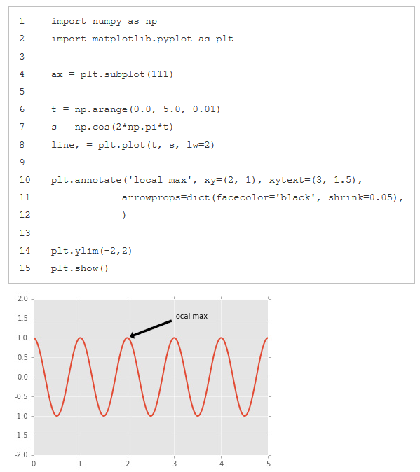 在数据可视化的过程中,图片中的文字经常被用来注释图中的一些特征。使用annotate()方法可以很方便地添加此类注释。在使用annotate时,要考虑两个点的坐标:被注释的地方xy(x, y)和插入文本的地方xytext(x, y)。[^1]