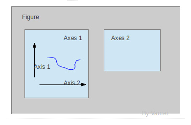 我们先来看什么是Figure和Axes对象。在matplotlib中,整个图像为一个Figure对象。在Figure对象中可以包含一个,或者多个Axes对象。每个Axes对象都是一个拥有自己坐标系统的绘图区域。其逻辑关系如下^3: