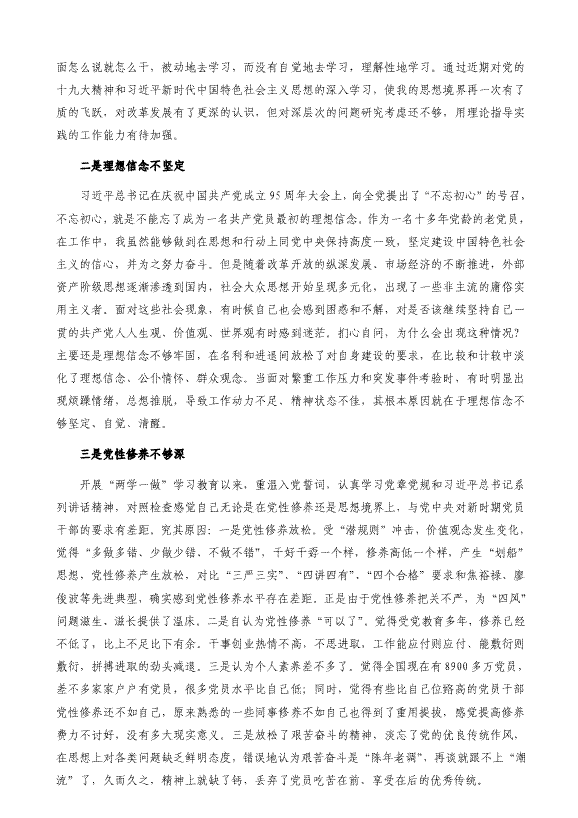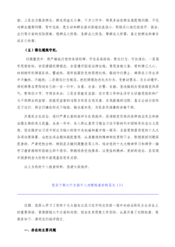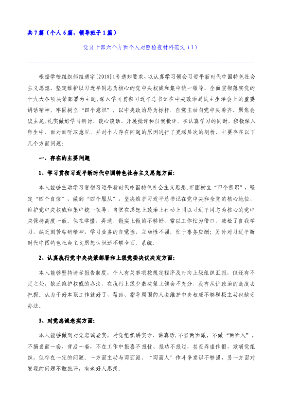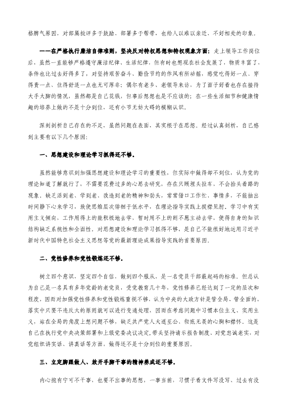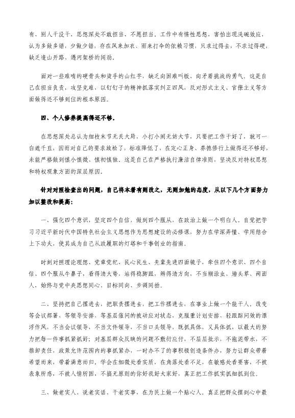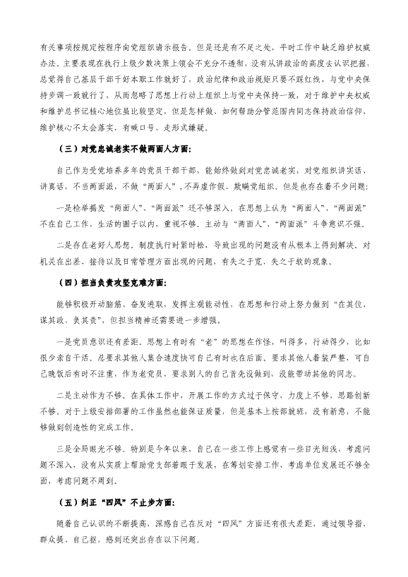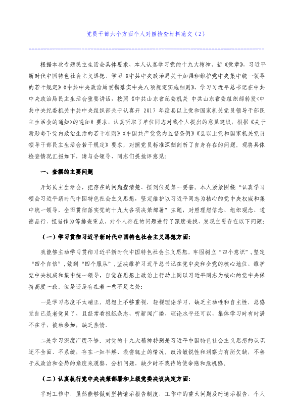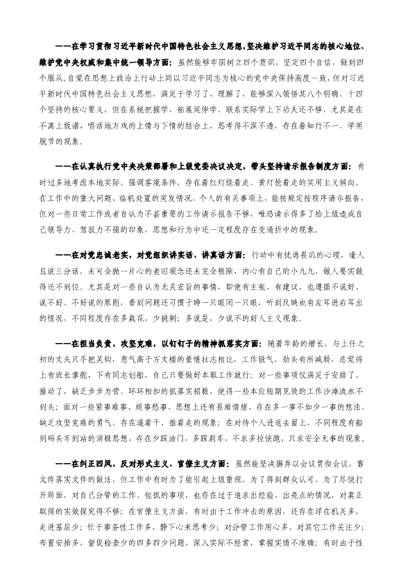 党员干部工作作风民主生活会六方面对照检查材料