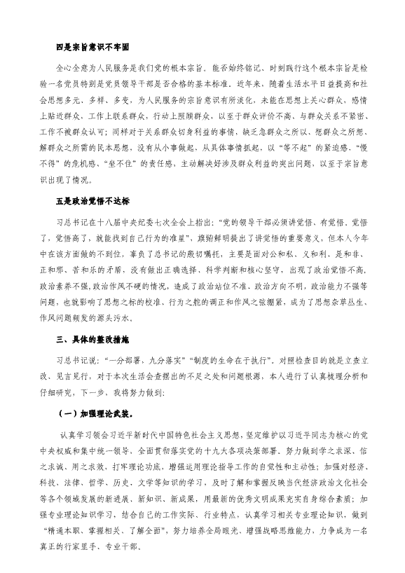 政治功能、四个意识、四个自信、工作作风、发挥作用、六个方面的问题及整改措施