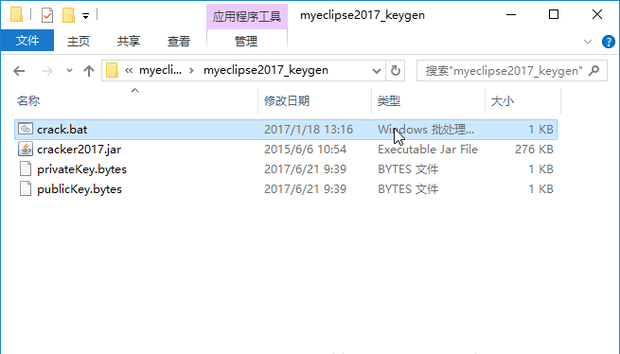 3.打开破解文件里的【myeclipse2017_keygen】文件夹,双击crack.bat