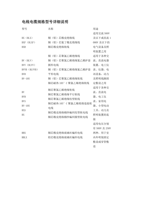 电线电缆规格型号说明