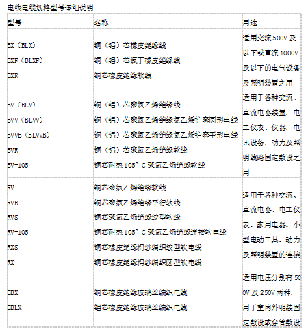 11、BV、BVR 聚氯乙烯绝缘电缆 用途:适用于电器仪表设备及动力照明固定布线用