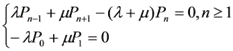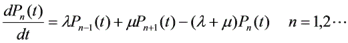 [P n (t+ △ t) - P n (t)]/ △ t= λ P n-1 (t)+ μ P n+1 (t)-( λ + μ )P n (t)+o( △ t)/ △ t