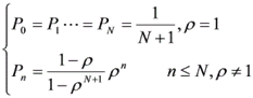 因为是单服务台,设排队系统的容量为 N ,即是排队等待的顾客最多为 N-1 ,在某时刻一顾客到达时,如系统中已有 N 个顾客,那么这个顾客就被拒绝进入系统。在研究系统中有 n 个顾客的概率 P n (t) 时,和标准模型研究方法相同,当 n=N 时有