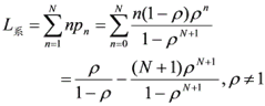 应该指出, W 系 , W 队 的导出过程中不是采用平均达到率λ,而是采用有效到达率λ 效 。这主要是由于当系统已满时,顾客的实际到达率为零,因为正在被服务的顾客的平均数为 1-P 0 = λ 效 / μ,于是λ 效 = μ( 1- P 0 )。