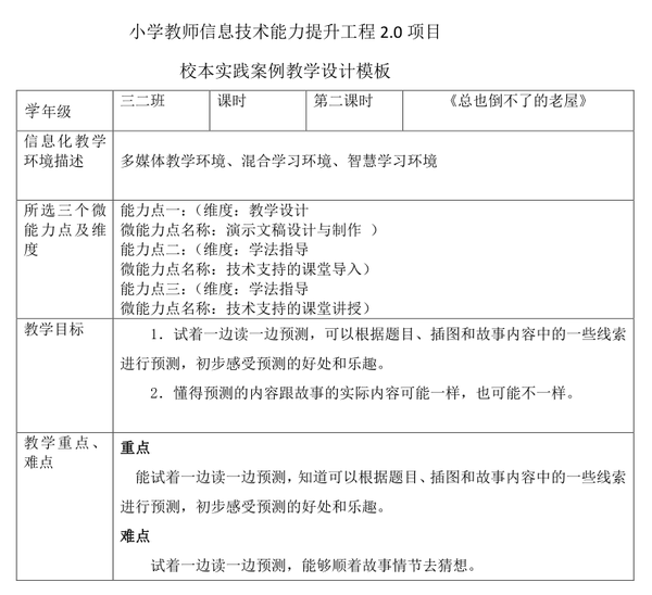 引导:上节课,我们通过读课题,猜想老屋可能是被施了魔法,所以总也倒不了。后来通过阅读验证,发现并不是这样,而是因为老屋答应帮助小猫(安心睡觉),帮助老母鸡(安心孵蛋),帮助小蜘蛛(安心织网抓虫)。虽然我们的预测与故事的内容并不一样,但是,我们依然觉得很有意思。这节课,让我们再次走进故事,学习一边读一边预测。