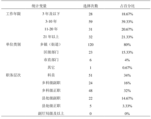 基层公务员是社会管理的中坚力量, 是党的各项方针政策的执行者、 实施者,是与群众直接接触的公权力行使者。 基层公务员的工作效率、 工作满意度、 工作积极性直接影响着群众对行政机关的认可度和满意度。 “由于职务与级别之间存在严格的对应关系, 各种津贴和补贴主要依靠职务晋升, 级别的激励作用没有得到充分发挥, 尤其是在县级以下机关, 公务员受机构规格等因素限制, 职务晋升空间小, 待遇得不到提高的矛盾更为突出。 ”