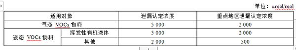 表1 设备与管线组件密封点的VOCs泄漏认定浓度