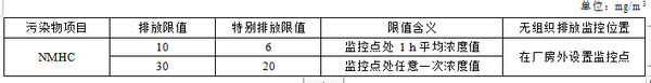表A.1 厂区内VOCs无组织排放限值